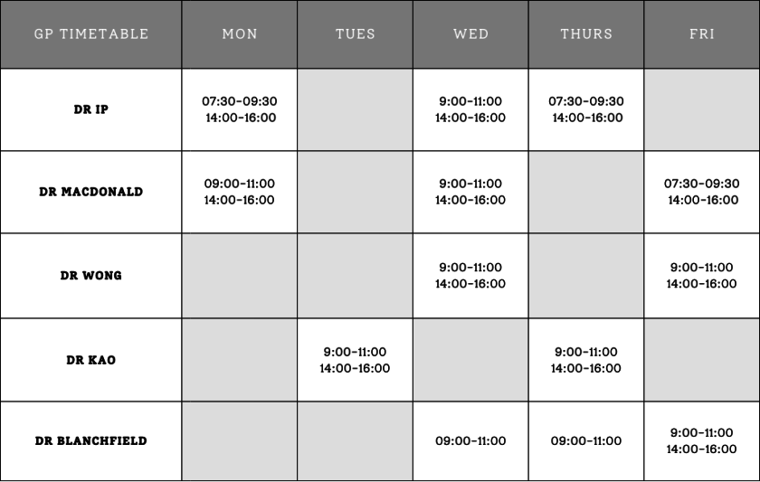 Extended hours appointments are available from 7.30am on a Monday, Thursday and Friday morning. A small number of pre-bookable appointments will be available each week. Please speak with our reception staff to book an appointment at this time.